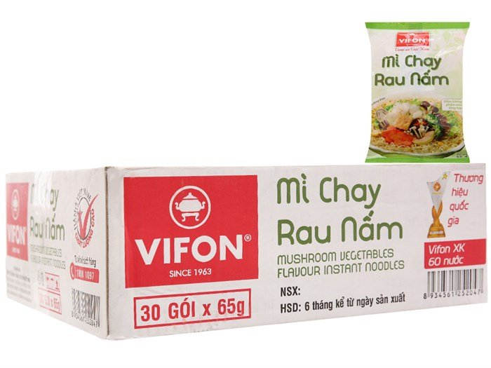 VẮT MÌ - Bột mì (70.5%), dầu cọ, bột khoai mì, chất ổn định, pentanatri triphosphat, gôm gua, muối, bột nghệ, chất tạo xốp (natri carbonat), mixed tocopherol (vitamin E).